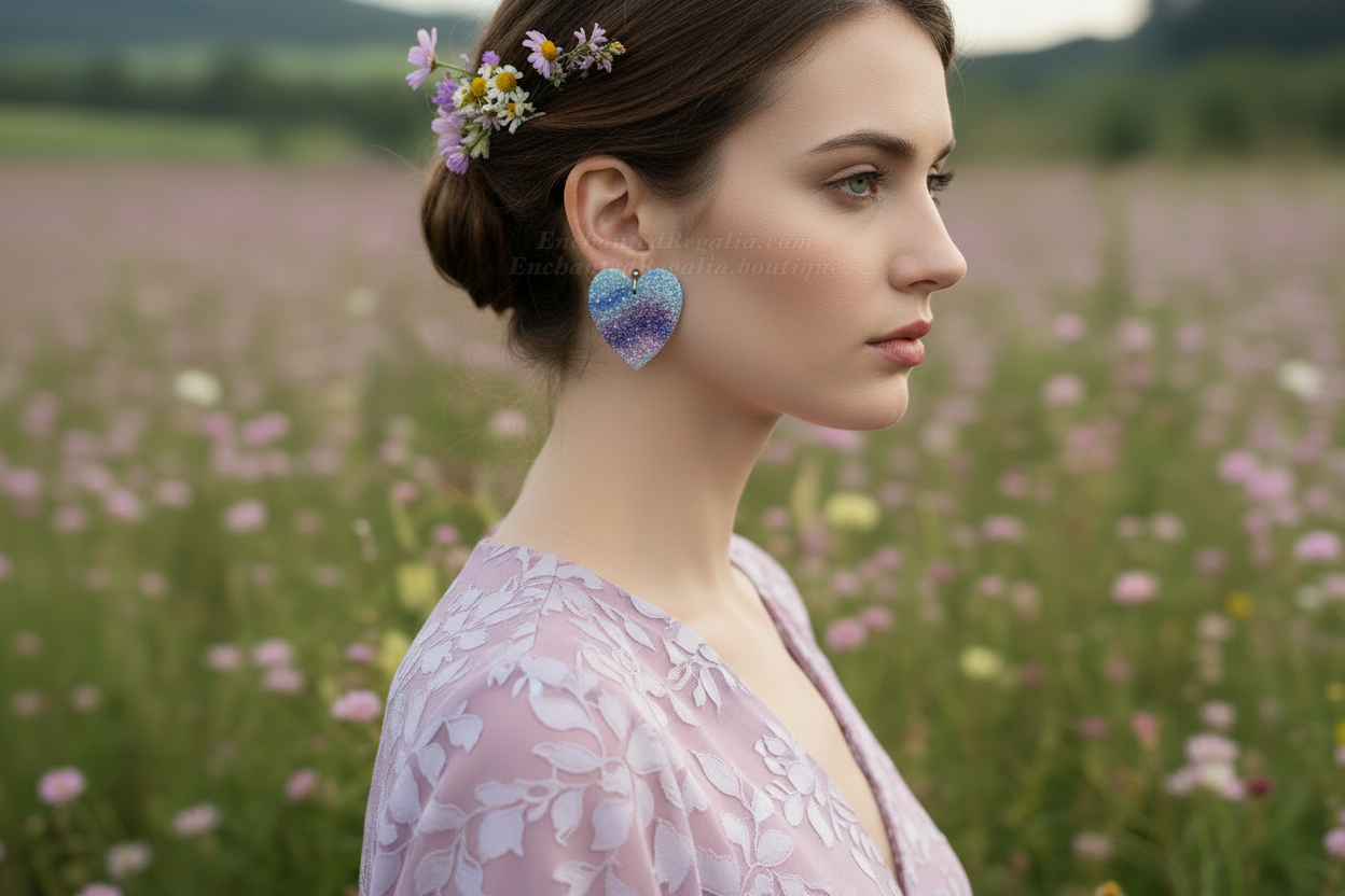 Capture the essence of spring romance with our heart earrings. Inspired by the impressionist art style, each piece features a delicate color pallet in a graceful heart design that evokes the soft, dreamy quality of painted blooms. Perfect for those who appreciate wearable art, these studs will add a touch of blissful elegance to your outfit.